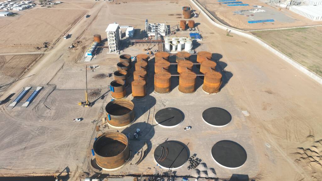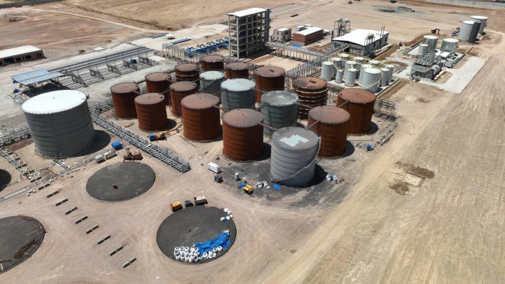 The construction site is advancing towards operational readiness with the installation of vital storage tanks and supporting structures. This phase focuses on integrating large-scale tanks, pipelines, and auxiliary systems, laying the groundwork for the refinery's core functionalities